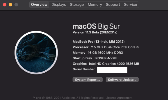 Installation of Big Sur 11.3 Beta 6 via OCLP 0.0.21
