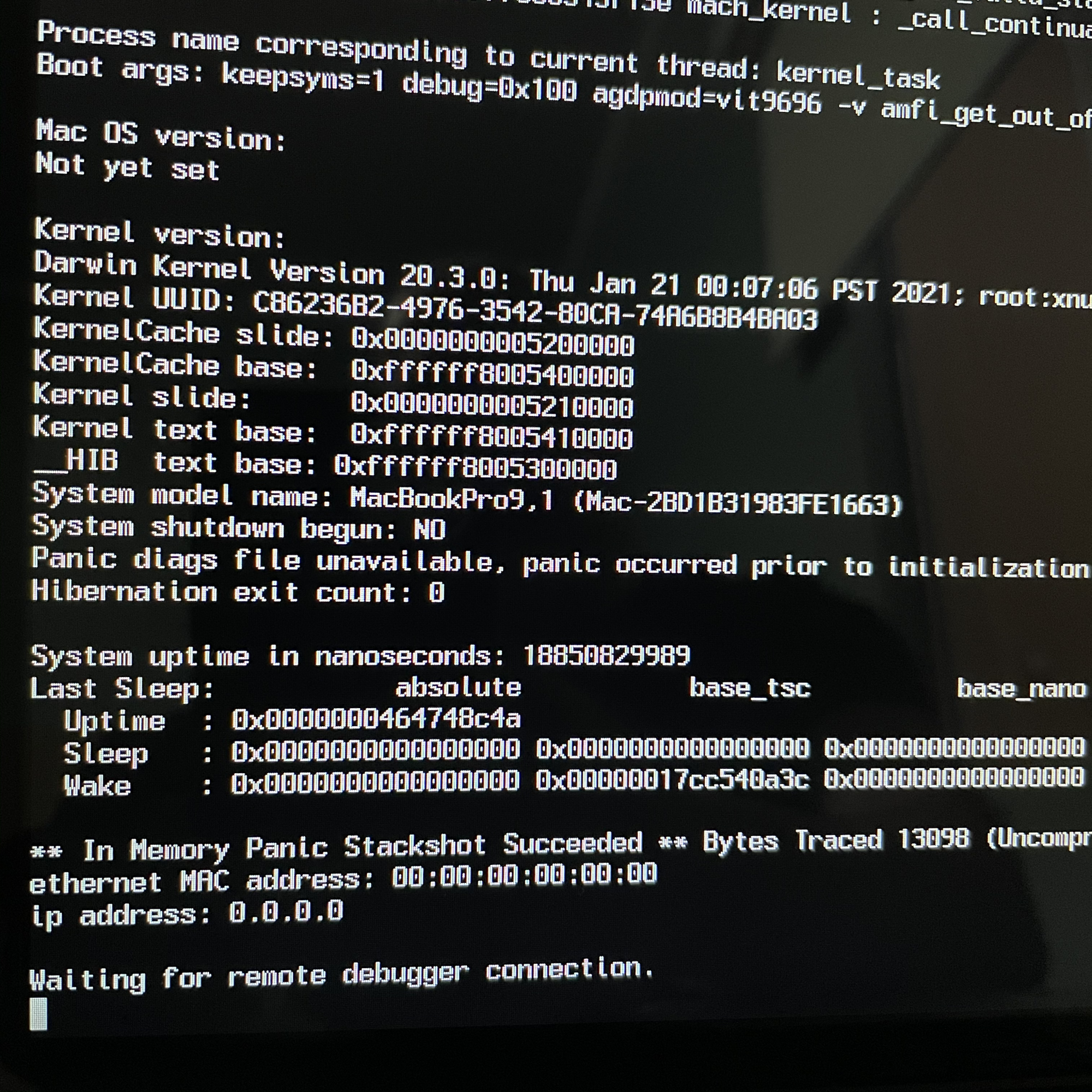 I tried to initiate a frame-buffer fix using jacklukes’s fixes, but it rendered the system un-bootable; this was not a great surprise, however, not being able to boot Catalina or Mojave (located on separate partition) was disconcerting. It was not possible to boot into Big Sur, Catalina or Mojave.