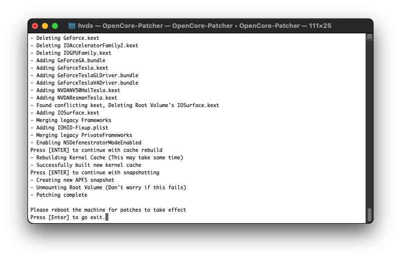 - then applied the Post Install Volume Patch of OCLP 0.1.1, reboot and boom - acceleration!