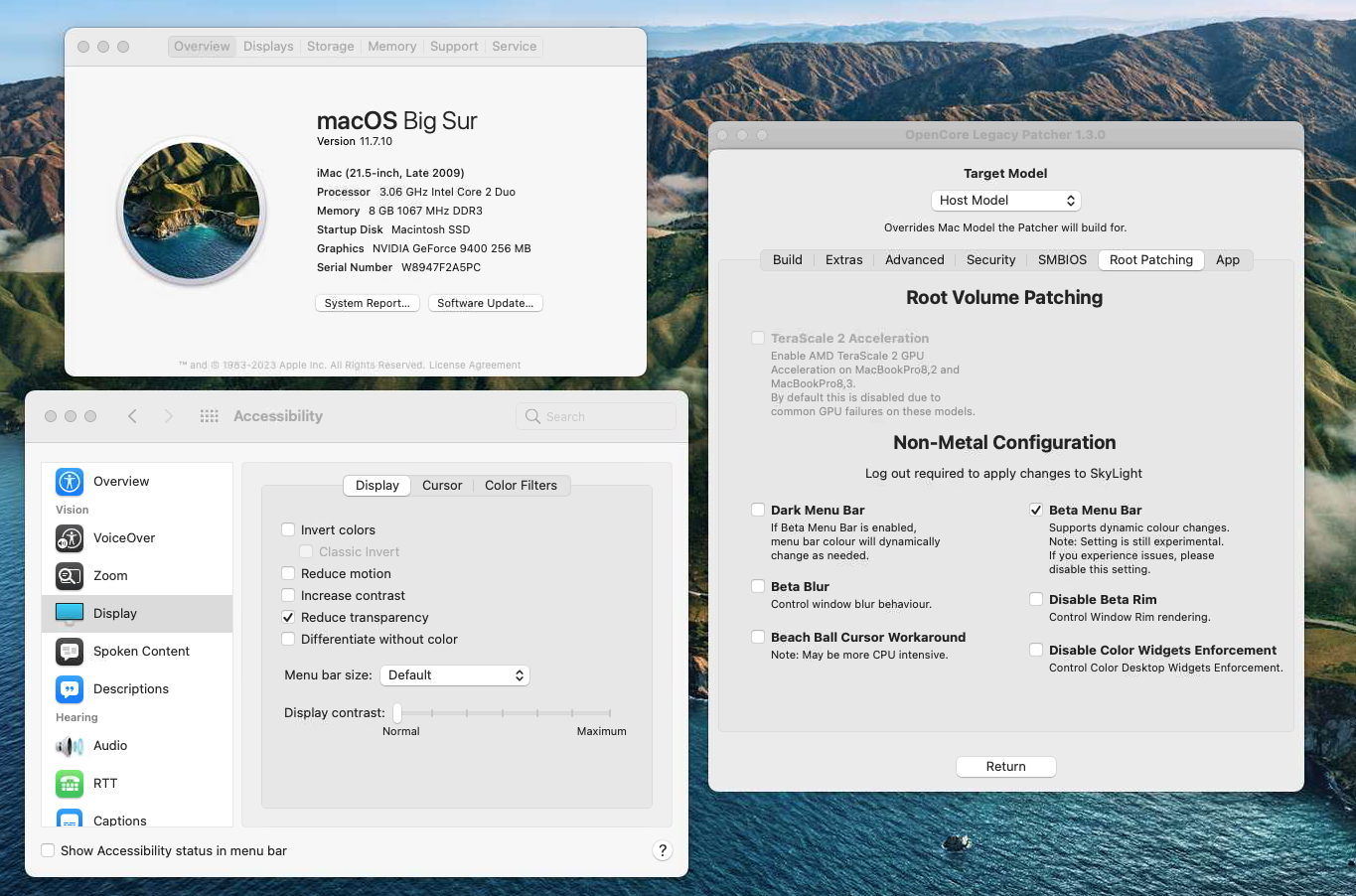 2. Installed Big Sur via OCLP 1.4.2 configured for iMac11,1