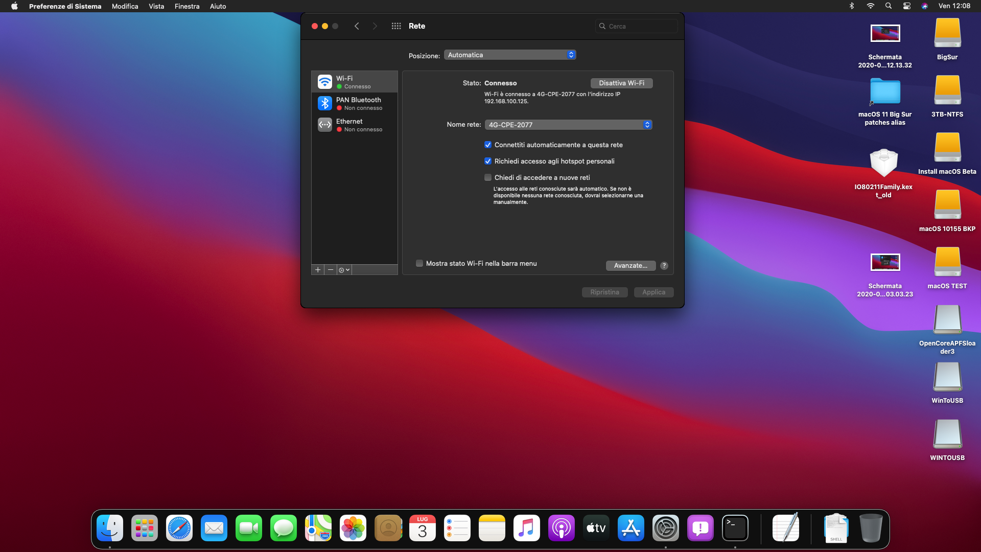 Works only with Apple bluetooth keyboard and mouse. We need a way to clone the working installation. Catalina doent's see BigSur Volume, and mount a volumes called "Update" and "BigSur - Data" . Disk Utility crashes (closes) after launch due to the Big Sur Container. I have try to clone it with BS recovery. it start, but then return an error. Wifi is still unavailable after patching. I have also tried to fix wifi with the new kext copied in /Extensions/ from BS Recovery, without errors but unsuccesfully (image attached)