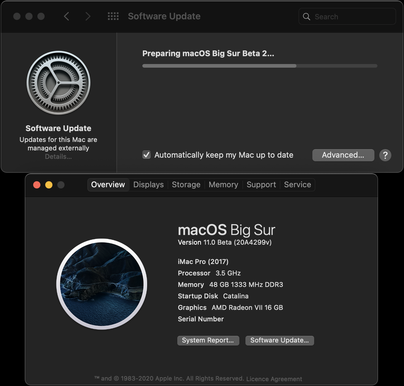 Because I am actually using a Mac Pro 5,1 (as per my signature). iMac Pro ident is just the result of SMBIOS spoofing via OpenCore. This is the key to make Big Sur installer / update work "natively".why does your about screen say iMac pro when the machine has 48gb 1333mhz ram?