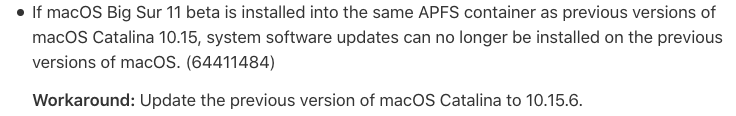 might now be safe to install Big Sur in the same APFS container as Catalina 10.15.6 (but not any earlier version) -- but look at the exact wording below in case I'm wrong -- and Apple finally documented the changes they've made to Time Machine.