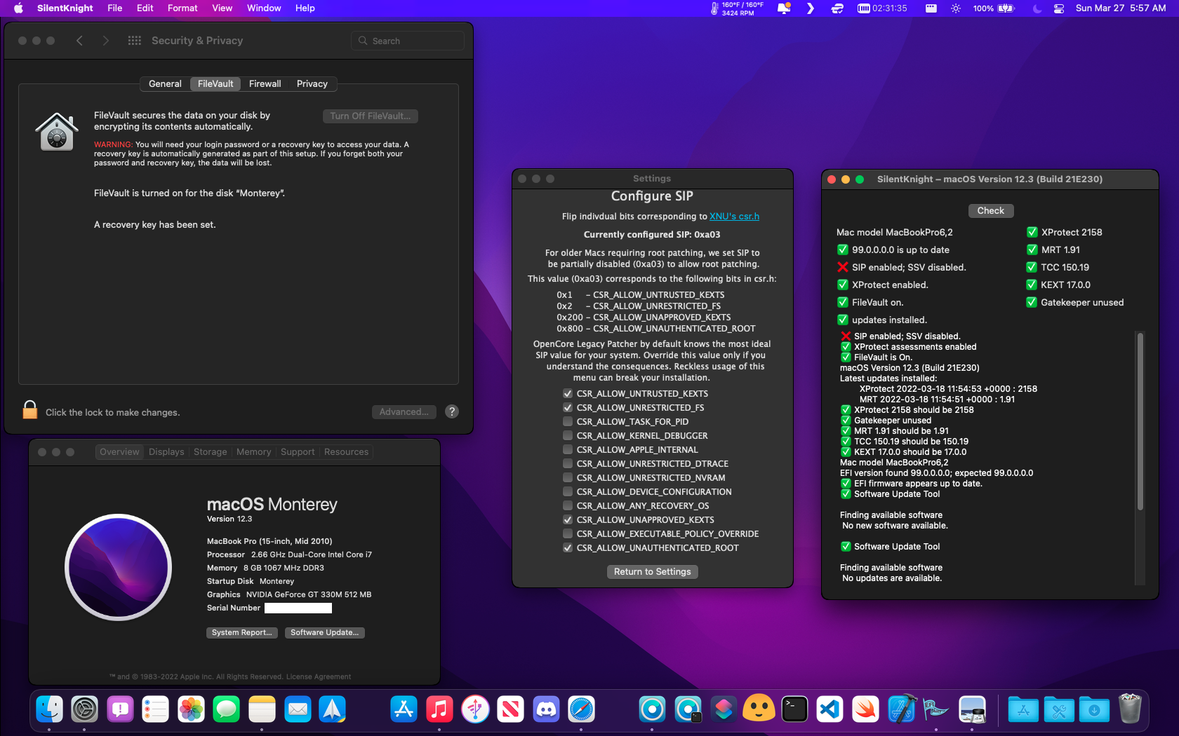 ^^^ FileVault works fine on my machine, too (no problems at all); OTOH, it’s TCC that doesn’t fully work (with partially missing first-run security prompts for files and folders access), with the default root patch settings: but those default settings seem to be necessary only for the root patching itself, and afterwards SIP can be reenabled, thus leaving only the “no authenticated root” flag checked (= SSV disabled, or with broken seal: as SilentKnight correctly reports). Of course, still an “unofficial” solution: so, we’ll have to wait and see, if it will be implemented in future versions of OCLP…