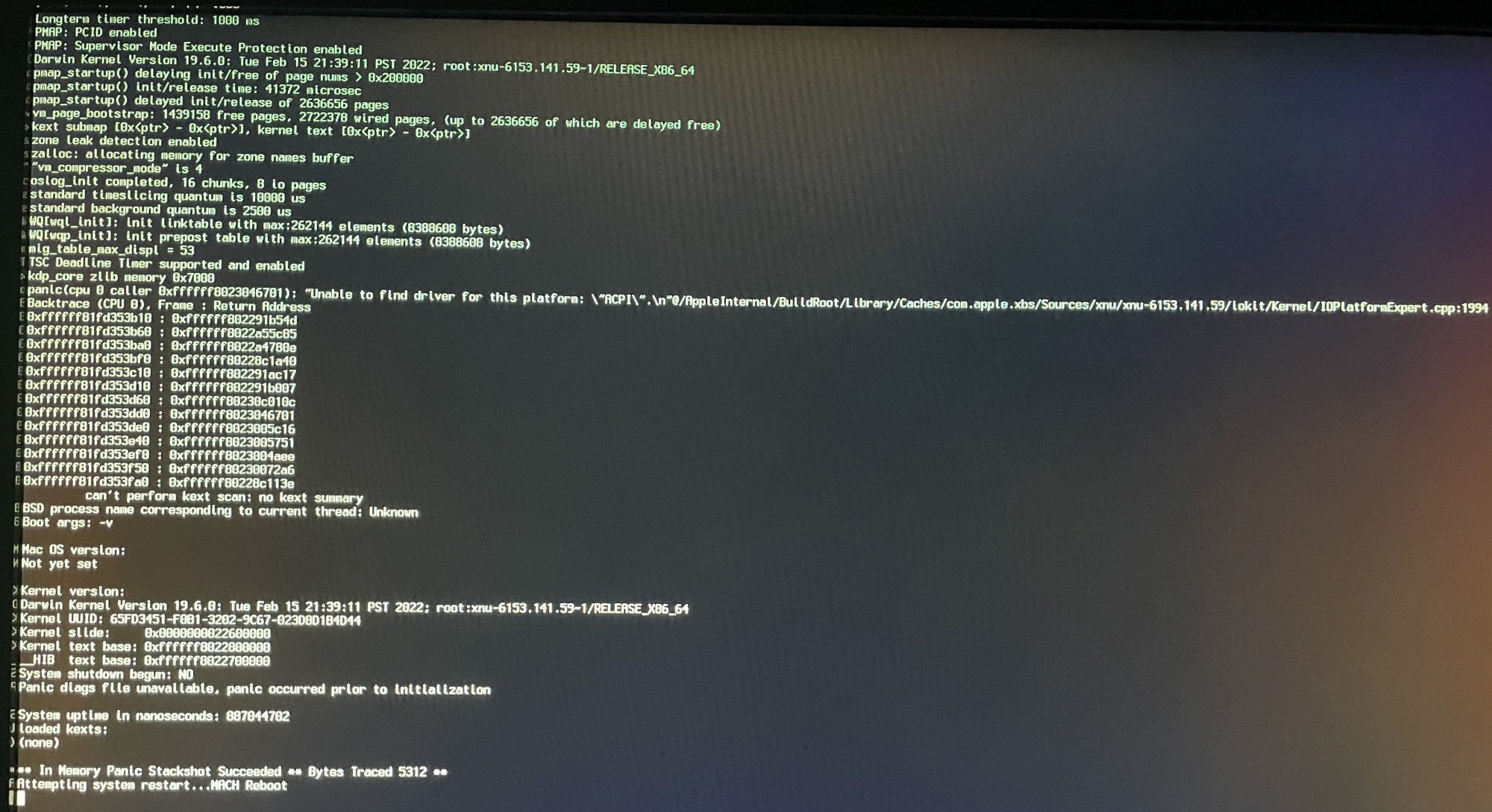 Quick question - did you start from scratch i.e. erase the external disk (Catalina disk) completely?And saw a kernel panic is occurring