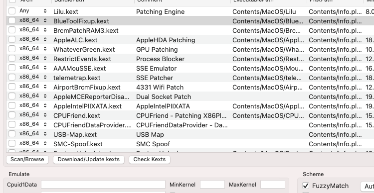 Now in 0.4.3 BlueToolFixup.kext is already in the "stock" kexts list (but much lower in the loading order) and adding BrcmPatchRAM3.kext after it no longer "activates" the CSR dongle.