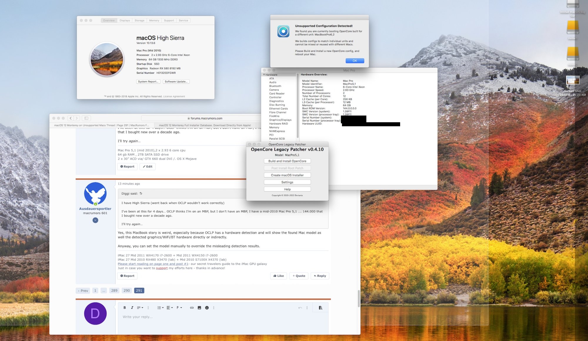I’ve been at this for 4 days… OCLP thinks I’m on an MBP, but I don’t have an MBP, I have a mid-2010 Mac Pro 5,1 …. 144.000 that I bought new over a decade ago.