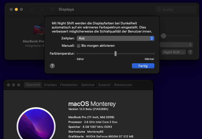 So this should work on any ≤ Sandy Bridge Mac (Ivy Bridge or later have Monterey stock night shift feature) and mainly Penryn Core2Duo.