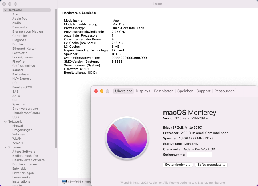 Что ж, я могу подтвердить, что первая бета-версия macOS 12.0, похоже, работает без каких-либо причуд на моем iMac Mac (Retina 5K, 27 дюймов, середина 2015 года), идентификатор модели iMac15,1. Wi-Fi работает, Bluetooth работает, ускоренная графика работает ( AMD Radeon R9 M290), звук работает ……