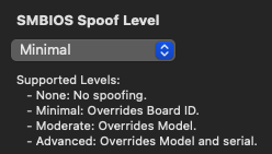 EDIT: I used OCLP to generate the OC EFI for the MP5,1 and took a quick look at the default settings for MP5,1. Minimal spoofing: