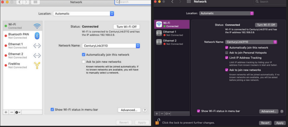 I'm just thinking out of the box here. but I noticed on Mojave in the network tab it shows the firewire icon, but in Monterey is gone,