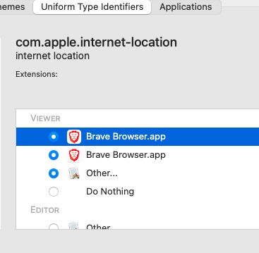 I'm still running Big Sur on my iMac and Firefox is my default browser. I just tried dragging the link to this Macrumors page to the desktop. When I double click it, it opens with Firefox even though the details for the file show Safari as the default and it's greyed out as well.