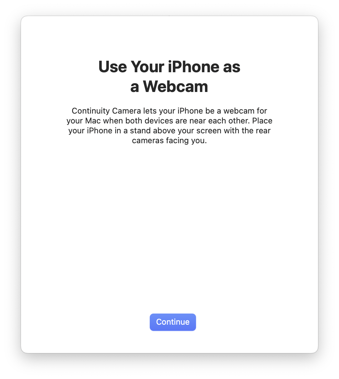 Continuity Camera is available on iPhone XR or later models. Using Continuity Camera wirelessly requires a Mac and an iPhone or iPad with Wi-Fi and Bluetooth turned on, and both devices must be signed in to the same Apple ID with two-factor authentication.