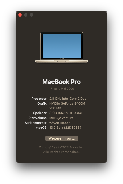 Congratulation on getting your MacBooK Pro 5,2 running Ventura.