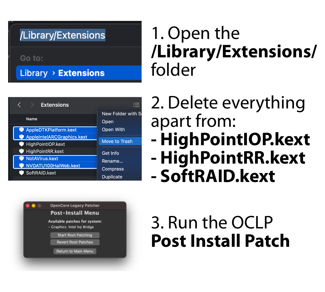 Nothing "mysterious" about it, the KDKs reside in Library/Developer/KDKs/KDK_13.2_22D49.kdk <--- this is what you should see. Delete that KDK and try the Post Install Root Patch again (after checking that the Library/Extensions folder only has those 3 files mentioned above). This KDK subject has been mentioned several times on previous pages, maybe a search is suggested?OK - so I have nothing in there except those kext files