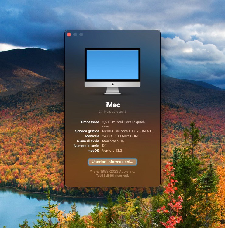 Model: iMac13,2, BootROM 429.0.0.0.0, 4 processors, Quad-Core Intel Core i7, 3,4 GHz, 32 GB, SMC 2.11f14