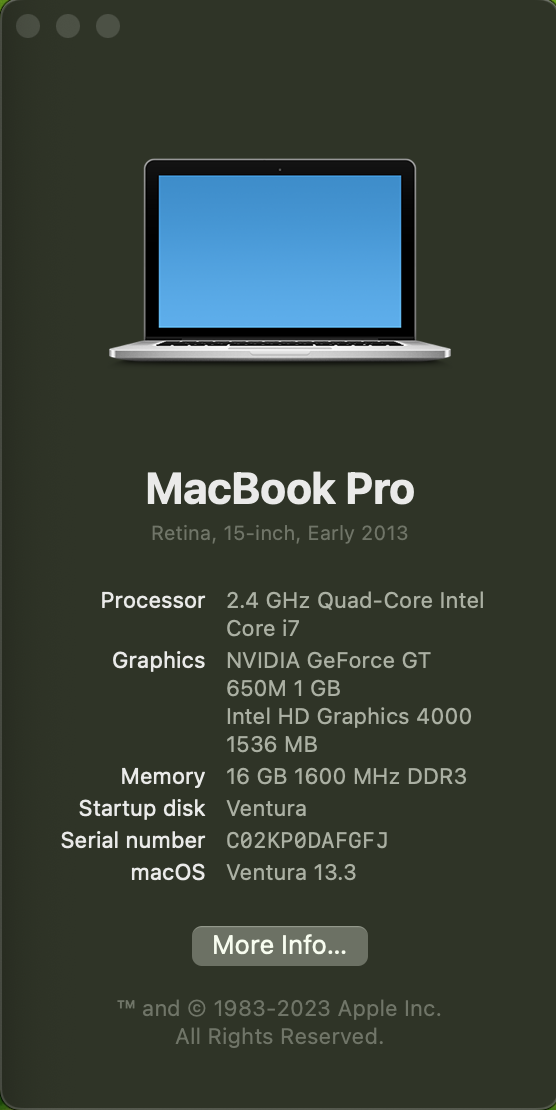 Installed Ventura 13.3 on my early 2013 MBP with 0.6.2. So far it works as it should, except Preview apps.
