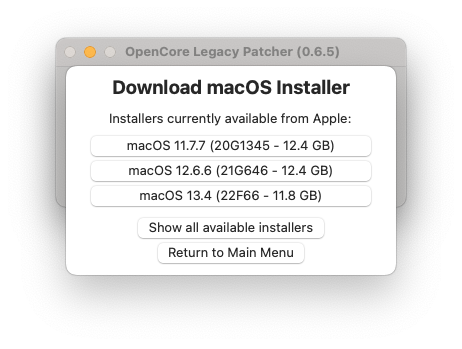 First, tried downloading the installer.pkg file from Mr. Macintosh's site, but when trying to use it with OCLP 0.6.6n to create a USB installer it says "22F59" (the real 13.4 version is build 22F66) in the Use Existing Installer window. Still not sure if that info is correct or a glitch in the build info reporting. Next tried using OCLP to download the install macOS, and I get the same "22F59"! Apple's servers are in error or the OCLP app doesn't read the build # correctly.
