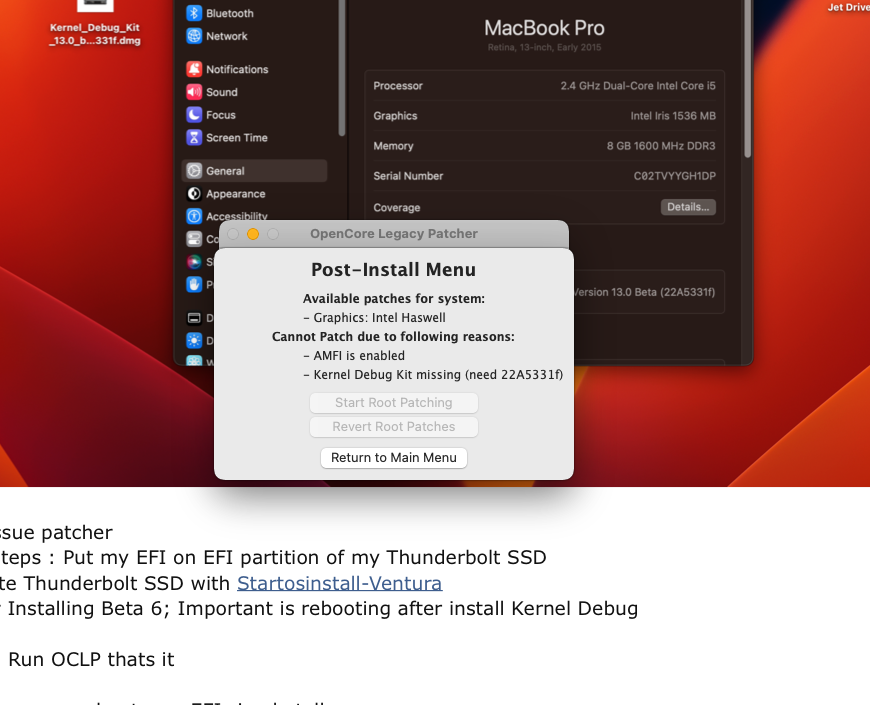 - Kernel Debug Kit and Ventura build 22A5331e