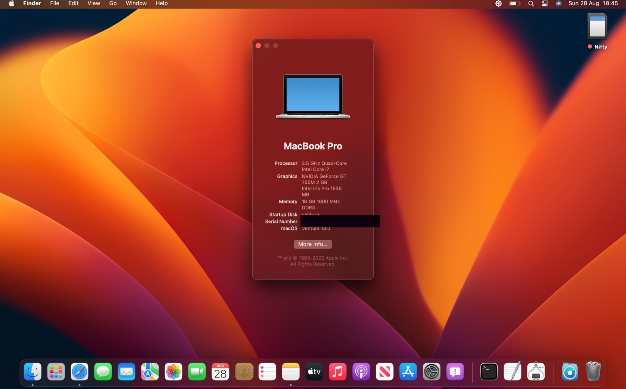 MBP5,2 mid 2009, Penryn CPU. Using OCLP ventura alpha branch 0.5.0 (edited - wrote 0.4.11 before) from 6 Aug.
