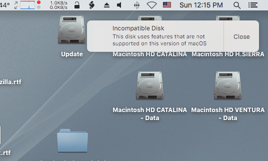 --Booted to the Ventura, both the Data and System Volumes appear on the Desktop, unlike when booted to the Catalina (Patcher) - my only experience with post High Sierra OS's (Have also installed Mojave Patcher, but that doesn't really qualify) - which only shows the Catalina, with both Data and System combined. Should both volumes normally appear combined when booted to the Ventura, as they do in Catalina?
