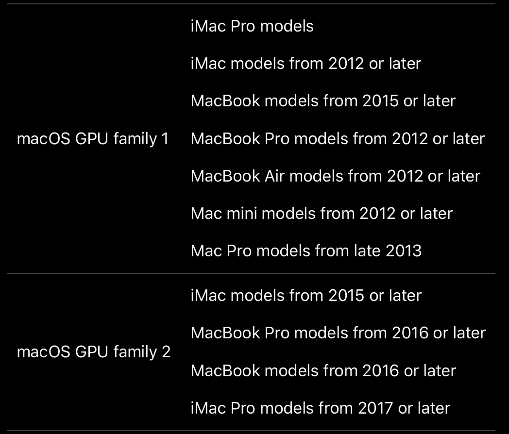 This was the big Red Flag in all of it for me. Hoping that is not the case.I wonder if also the jump to Metal 3 will make things difficult for those of us using older machines.