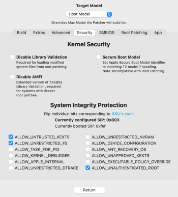 In fact, it is in the security menu...@RK78 Also of note, OCLP overrides any SIP settings you try to set in Recovery Mode. While booting through OC, use the OCLP settings to modify SIP and not Recovery Mode.