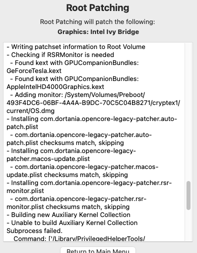 Using OCLP I downloaded latest version of Ventura (13.7.3) and again tried root patching but was again unsuccessful.