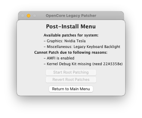 - Once in Ventura, run the OCLP-GUI of VA 0.5.0 again