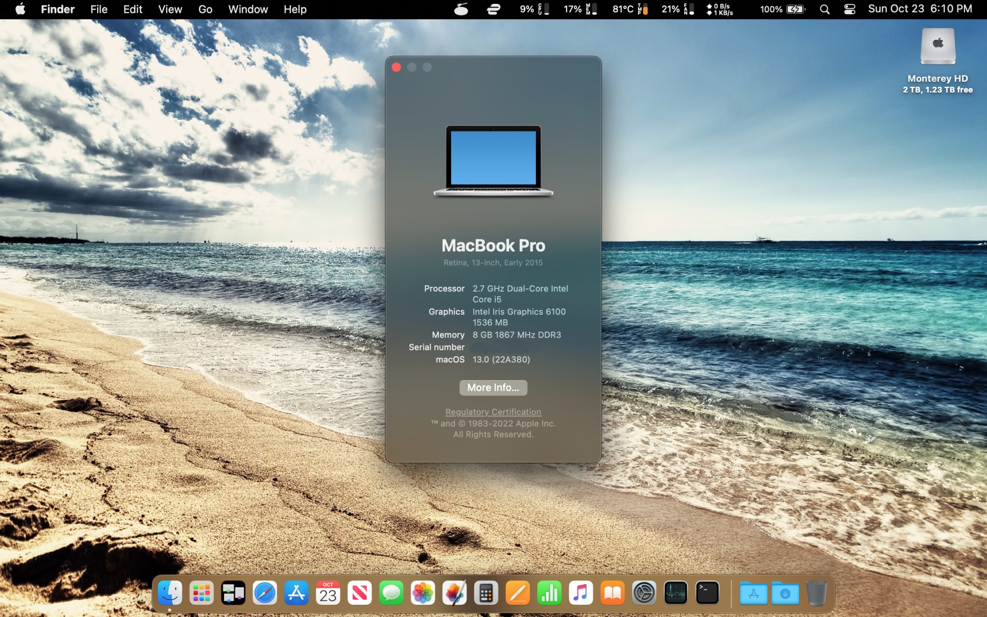 I am using external SSD thunderboltI have the same setup as you but It feels slower than Monterey.