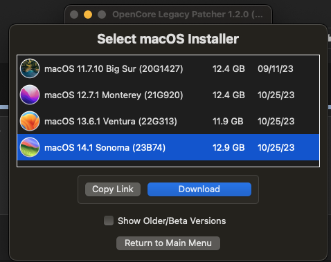 Any idea why, when creating an usb installer using OCLP or MrMcintosh links to the latest 23B74 actually install a previous 14.1 **69 version ?