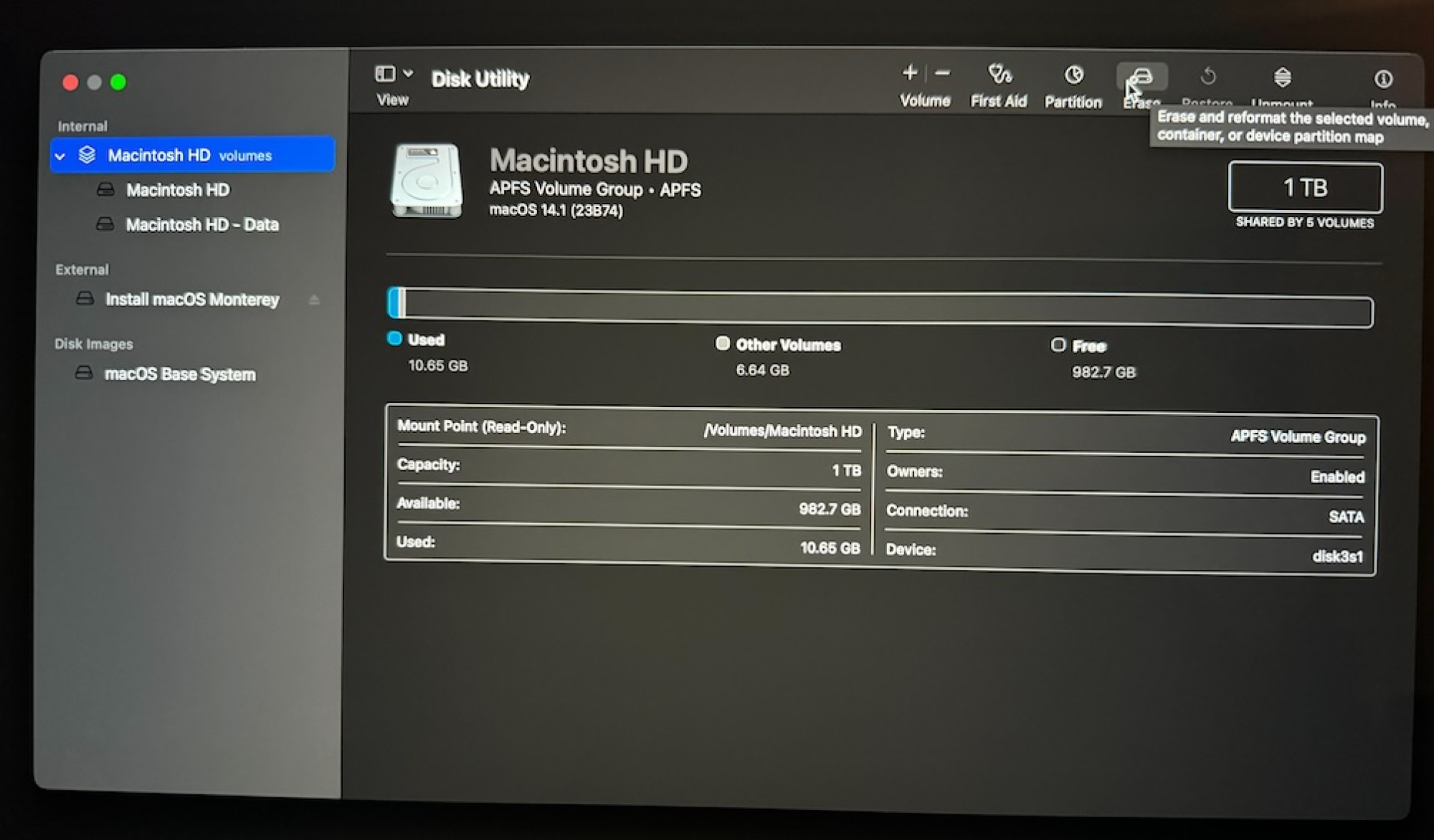 After the failed Sonoma install, you can see in Recovery how it got most of the way there. I stuck a Monterey USB back in there, because I'm going to have to head on back to 12.7, unless you guys have other ideas?