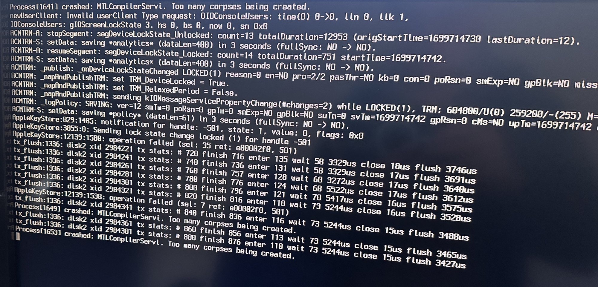 Noticed that more non-Metal Macs were not having issues with the lastest updates both MacOS and OCLP, yet more than a few with Metal Macs trying the second Beta of 14.2 (23C5041e) were seeing the same issues whether OTA or USB installed. Actually, to me it appears there is a problem with Metal patches (I can only test Haswell) and Launch Services since the MTLCompilerService (too many corpses) and the WindowServer are directly involved. Also, a clean install with an OCLP-made USB, ethernet-connected over a FiberOptic network yielded the same issue. Is AMD Radeon R9 a Haswell?? 🤔 Hmm?Can you clarify regarding your comment on the "non-Metals seem immune"? Also regarding the "Haswell" involvement?