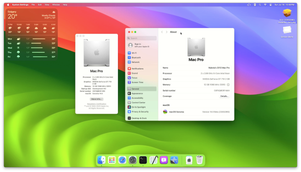 however in the previous pages I see images with Sonoma installed in various Macs with semi-transparent menu bar and dock so I assume the postinstall has been applied with the video drivers and it seems wifi too
