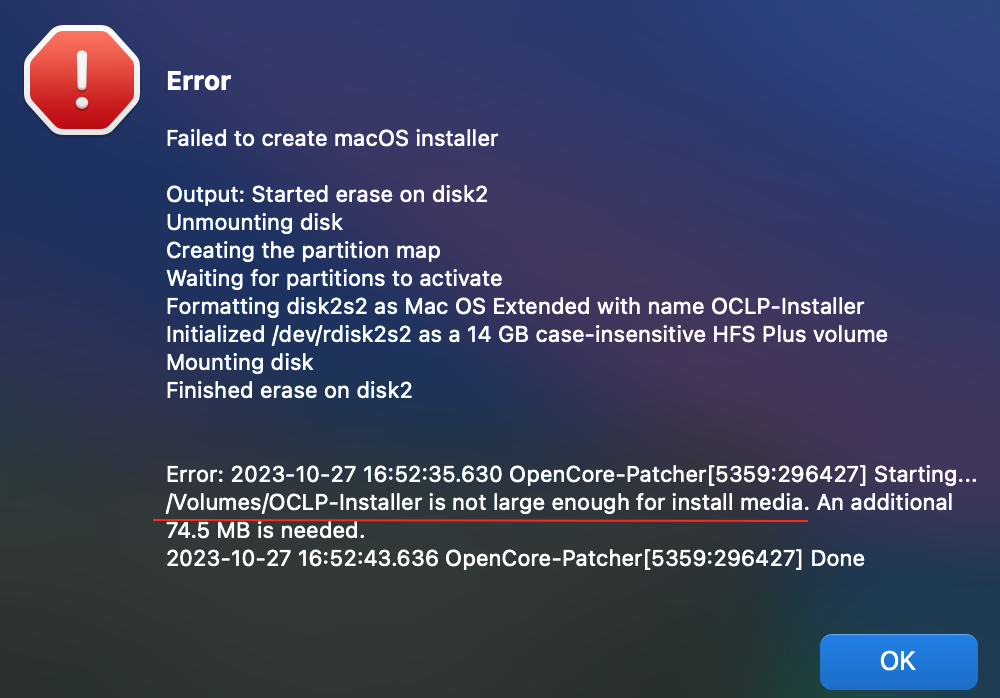 The current release of OCLP v.1.3.0 will fix that. 🧐Did you find a solution to this problem? I've tried with two different USB drives and the result was the same.