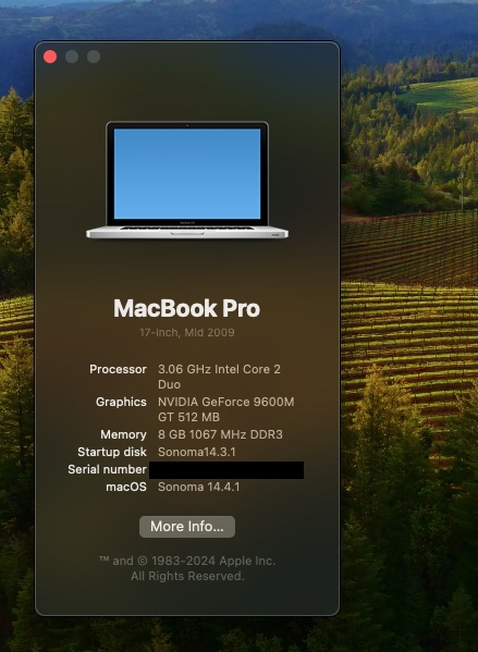 14.3.1 works fine with that machine using OCLP, but 14.4 and newer needs some fixes that are still in testing.how it looks with Macbook Pro 2010 6.2 is there a Chance, or witch version is the last that it works.