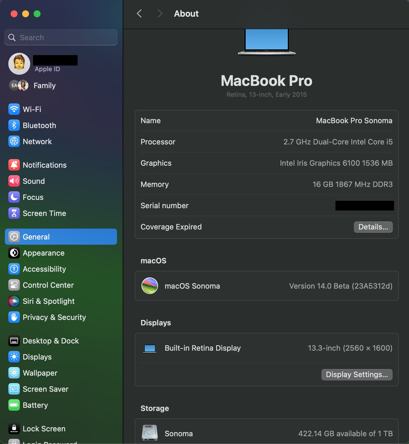 2) Installation of Sonoma Beta 5 on MacBook Pro 5,2 (17" from 2009, C2D @ 3.06 GHz, 1 TB Evo 860 SSD)