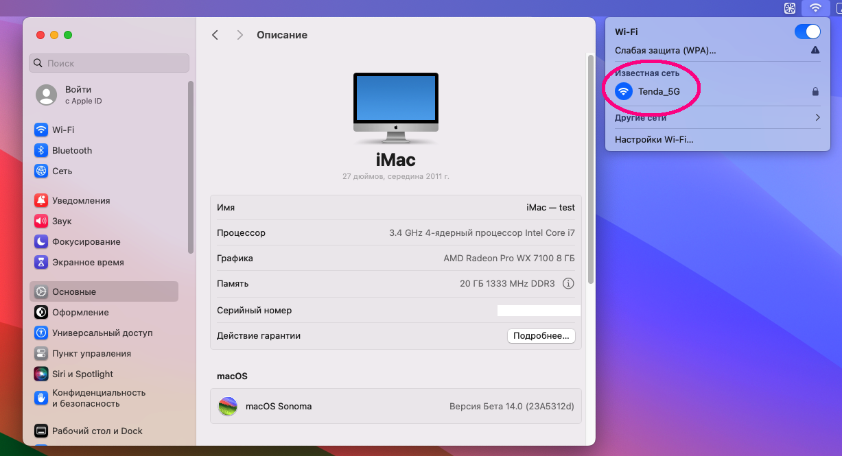 Once Sonoma was fully installed, I opened System Settings, selected Wi-Fi and then toggled the switch to "on".