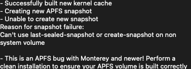 First attachment is Sonoma generated error, second (with dark background) is Monterey associated error message.