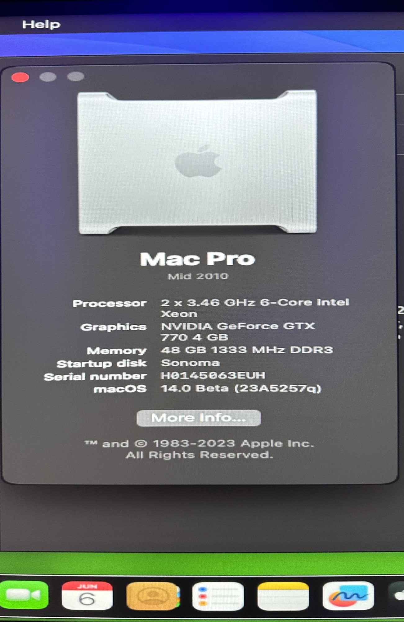 Any thoughts of trying something like the RX6600XT, it can be flashed to work properly and recognised by 5,1. It's a fairly fast card as well - uses same power connection as RX580. Makes less heat as well.MP 5,1 installed Sonoma Beta successfully. As others have shared, a few small details for beta1:
