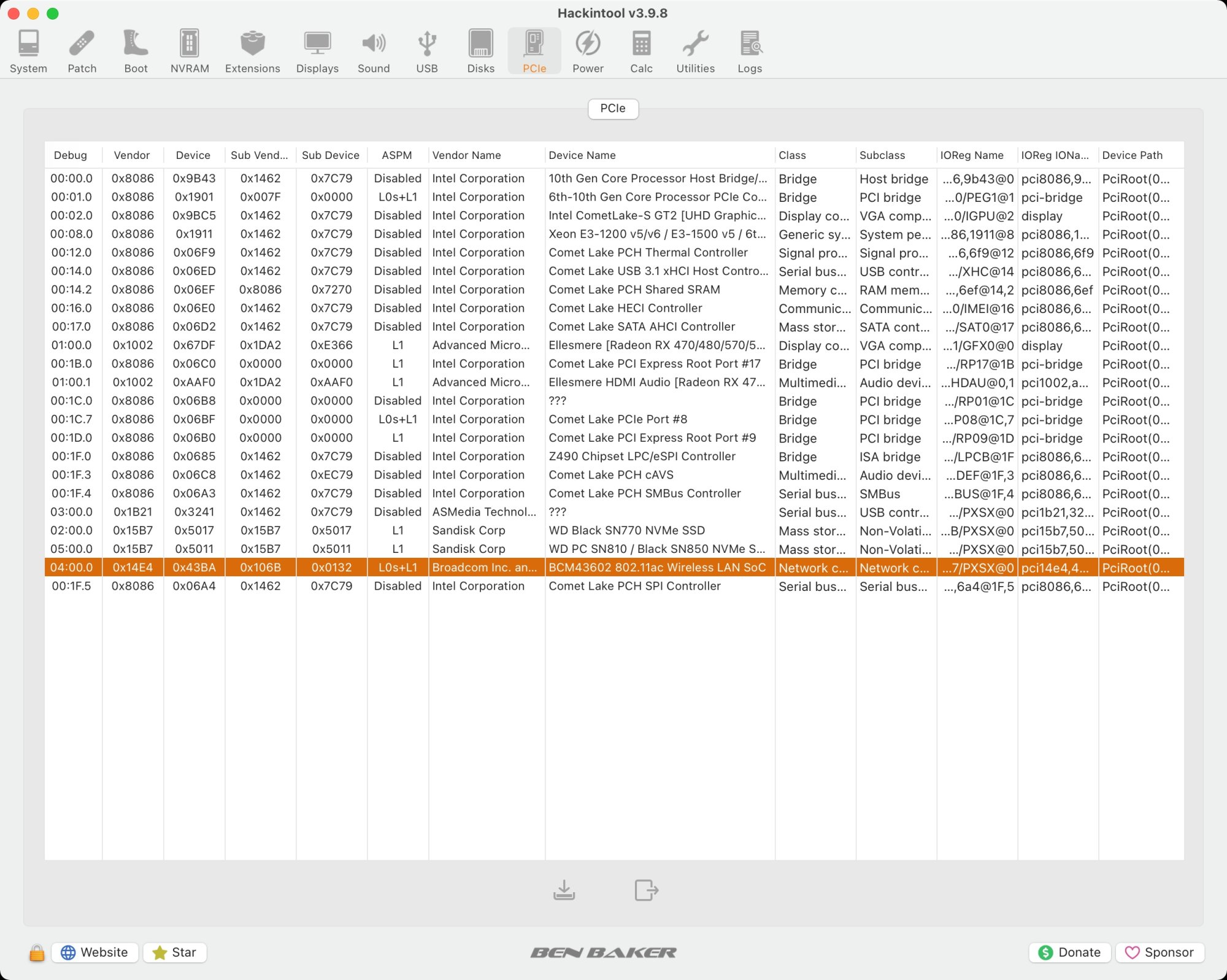 And this is the table with all the PCI devices for a 2017 iMac 4K