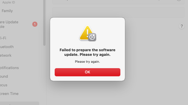 error: Error Domain=MobileSoftwareUpdateErrorDomain Code=3 "'./usr/sbin/bluetoothd' does not verify" UserInfo={target_update=23B5067a, NSUnderlyingError=0x7fcbb1a87bd0 {Error Domain=MobileSoftwareUpdateBOMErrorDomain Code=1 "contents of '/usr/sbin/bluetoothd' don't match bom (51750e1b vs 1a374e0)" UserInfo={NSLocalizedDescription=contents of '/usr/sbin/bluetoothd' don't match bom (51750e1b vs 1a374e0)}}, MSUFullReplacementRecommened=true, NSLocalizedDescription='./usr/sbin/bluetoothd' does not verify}