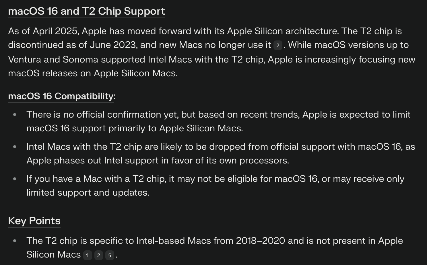 Today, there are only rumors, and Tim Cook probably doesn't even know whether macOS 16 "Cheer" will work with an Intel computer (T2 or not).![]()
