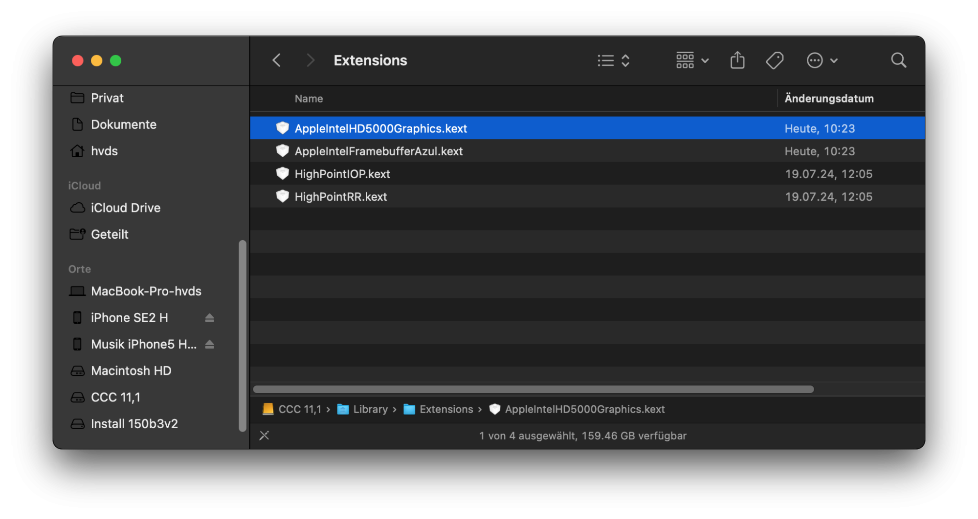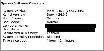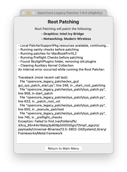 Just as a side note, the original Sequoia installation (see post #228) became corrupted, hence, new installation from scratch on the internal drive. The OCLP 1.6n did not allow installation of Sequoia, so downloaded source code and build components; transferring