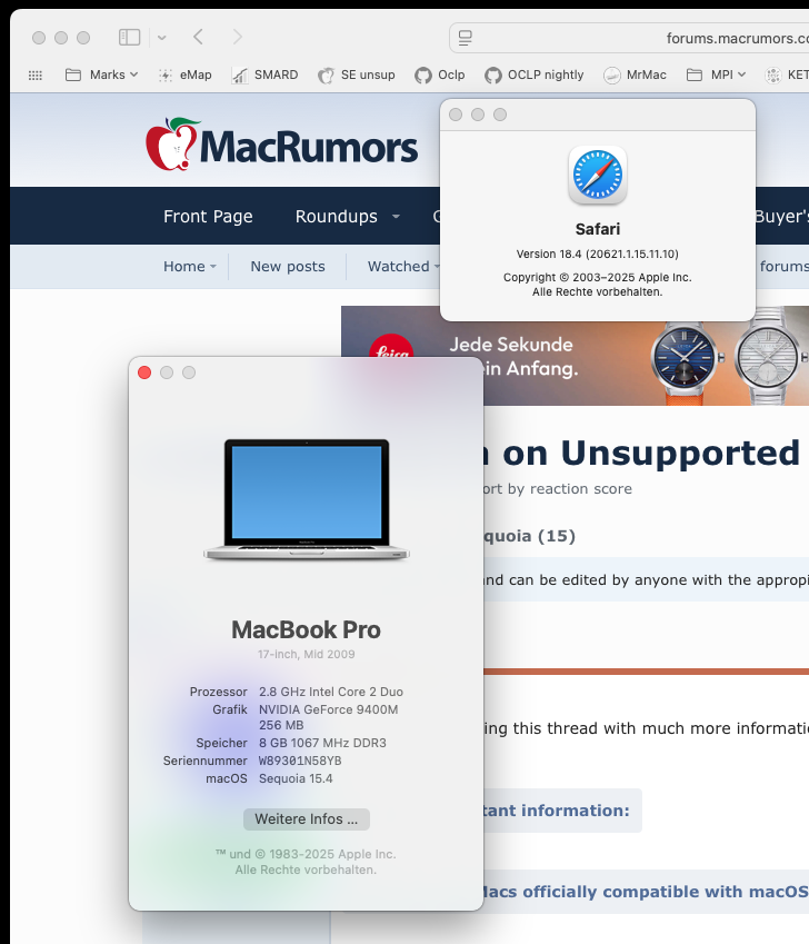 MBP5,2: nothing new, just to confirm these Safari findings.I upgraded from Sequoia 15.5 Beta 2 -> Beta 3 in a test volume on my HackBookPro6,2. The upgrade was smooth, but Safaria 18.5 in Beta 3 is no longer able to load MacRumors web pages (was working in Beta 2). Firefox works fine.