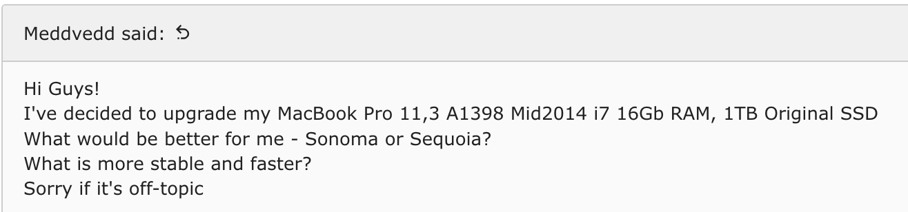 I should have reported back that I am online. A friend generously lent me his old MBP11,3 from 2014 on which, in 2023, I had installed OCLP 0.6.9 and Ventura, with exhortations that he update often (he ignored that, but enabled auto update). He lent me the MBP because I said I would use an external SSD for my stuff, and not touch the internal SSD. As soon as I received it, I downloaded OCLP 2.4.0 meaning to remove 0.6.9 later. But autoupdates don't wait for anyone, and the MBP updated to Sequoia on the main SSD. It is to the credit of OCLP 0.6.9 that not only the installation go well, it restarted albeit without WiFi and stuff. As I had OCLP 2.4.0, I updated to that, and did a root patch. Dead easy. No hiccups whatsoever. Now the laptop was running Sequoia, it was relatively easy to create a USB installer for the external SSD and just do a 'routine' install. OCLP spoils one - no extraordinary mods, nothing, just works. And since the M1-MBA was gone, I didn't need to spoof anything. Laptop is working like a champ. Thanks to you all.