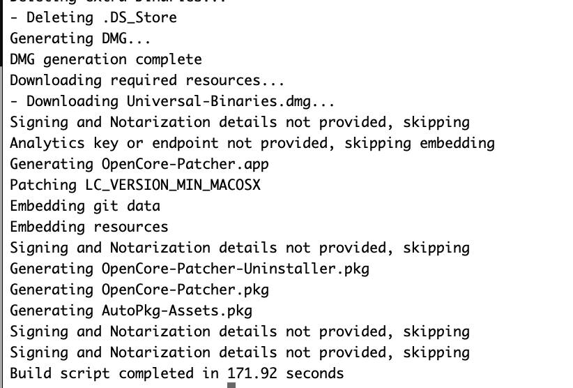 Maybe download OCLP fresh, run the build from Terminal and see what happens. Install OCLP from the OpenCore-Patcher.pkg in dist directory (double click) then run OCLP from the app in dist. - As said for successful running of everything do the make debug first if not already done (build again after the make debug).