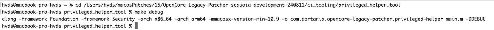 In any case it seems unnecessary to "make debug" of privileged_helper_tool just for build; that seems necessary later for running OCLP (e.g. to "build and Install OpenCore", namely the install step).