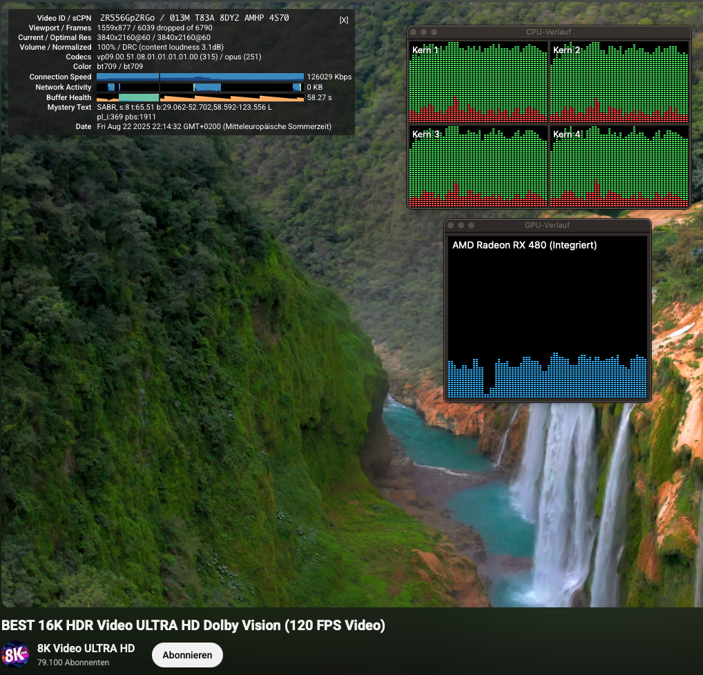 Oh, it's OK, I wasn't seeking answers, was just wanting to provide info and feedback that might help the developers improve performance.Well I was going based on the 2015 15" MacBook Pro which has an R9 M370X which is also GCN, neither of these AMD GPUs have decode support and Safari is limited to 1080p h264 (AVC) here on native Monterey.