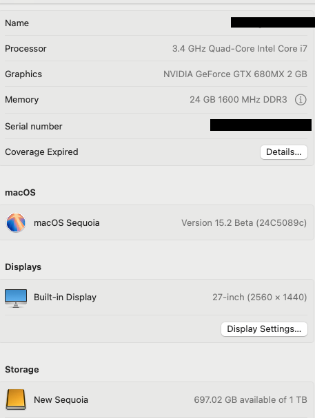 iMac 13,2 installed 15.2 beta4 OTA using OCLP 2.2n